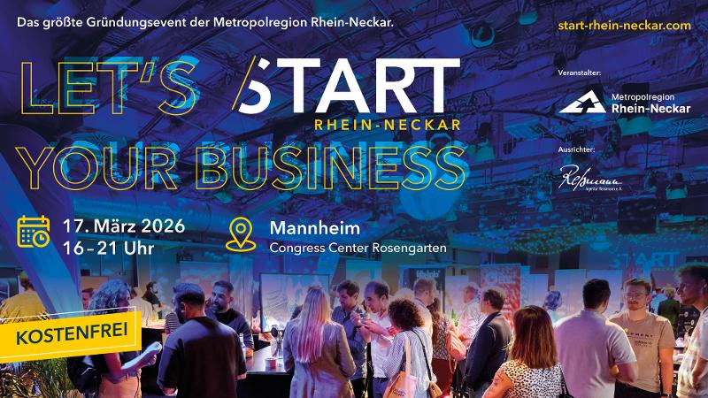 Dann verpasse nicht, das größte kostenfreie Gründungsevent der Metropolregion Rhein-Neckar am 17. März 2026 von 16:00 - 21:00 Uhr im Congress Center Rosengarten in Mannheim.